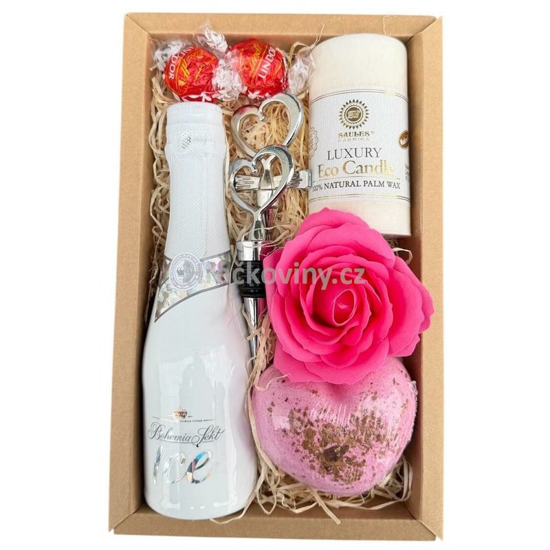 Koupelová bomba srdce Love Tender Mýdlový květ růže velký růžový Svíčka Luxury bílá Zamilovaný set na víno srdíčka
