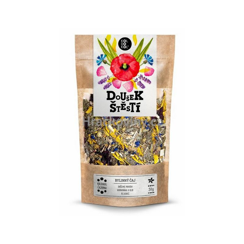 Štěstí má mnoho podob. Jednou z nich je čajová směs Doušek štěstí. Barevná směs pečlivě vybraných bylinek potěší oko, pak nos a v závěru zahřeje na duši. Štěstí se totiž skrývá i v každodenních maličkostech. Tak si ho vychutnejte doplna!