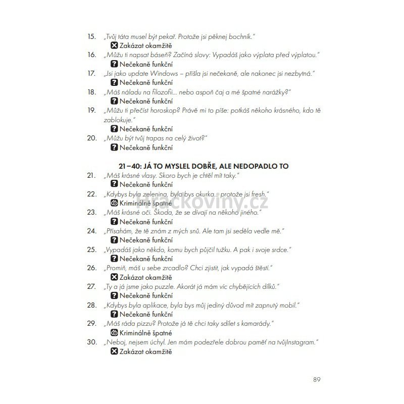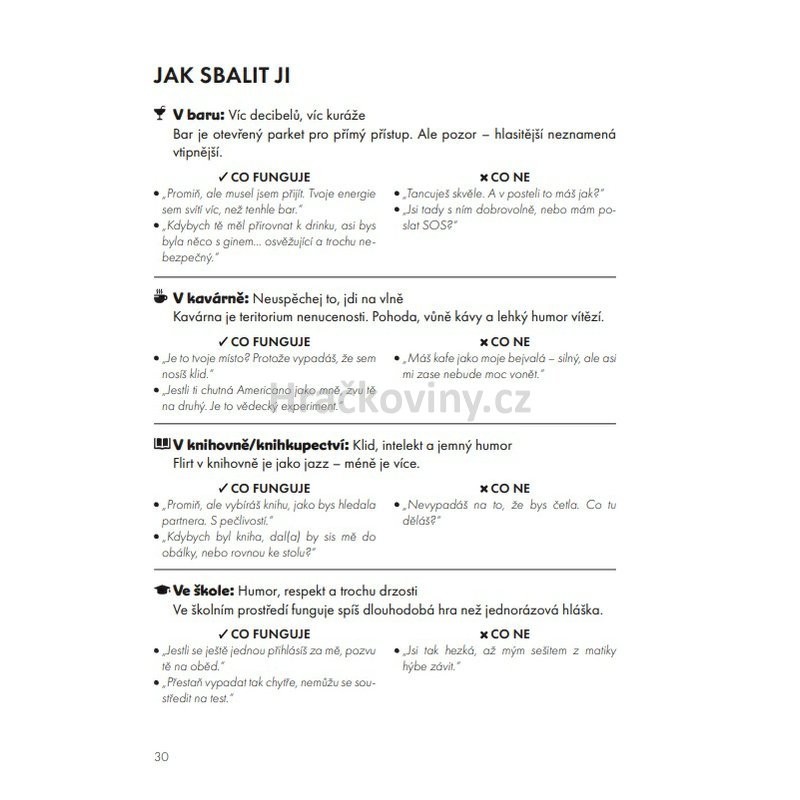 • tipy pro reálné situace (v baru, online, v práci…),