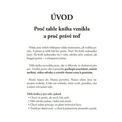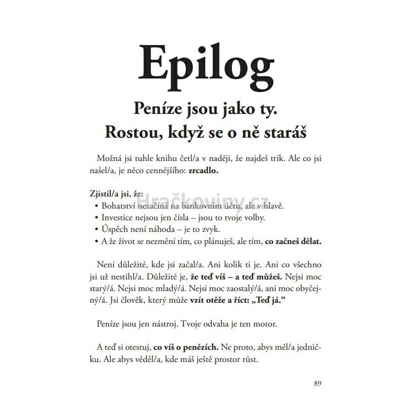Tahle kniha tě provede vším, co tě ve škole nenaučili: od vztahu k penězům, sebevědomí a odvahy začít, přes finanční gramotnost, tvorbu hodnoty, až po skutečné principy pasivního příjmu.