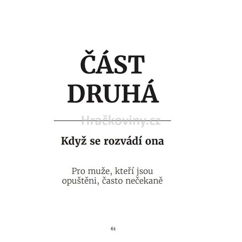 Tahle kniha je férový, praktický a místy drsně upřímný průvodce pro chlapy, kteří se rozvádějí – ať už odcházejí sami, nebo byli opuštěni. Jasné kroky, jak mluvit, jak jednat, jak se nezbláznit a jak z celé situace vyjít jako chlap se ctí.