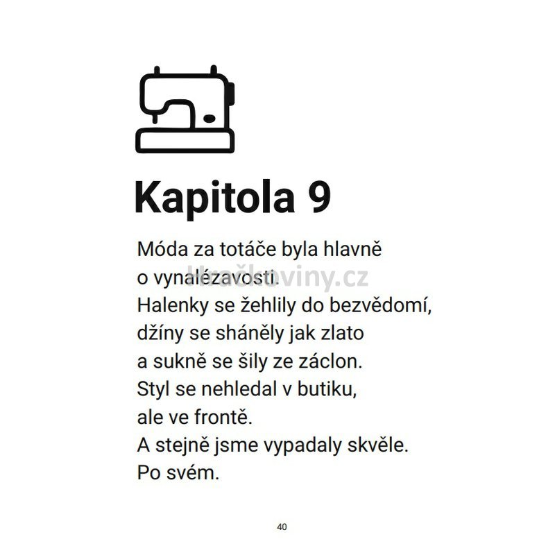 Kniha plná retro vzpomínek, humorných postřehů, upřímnosti a špetky rebelie. Od dětství v sukni a pískovišti přes první lásky a pionýrské šátky, až po babičkovský level se sušenkou v kapse a klidem na duši.