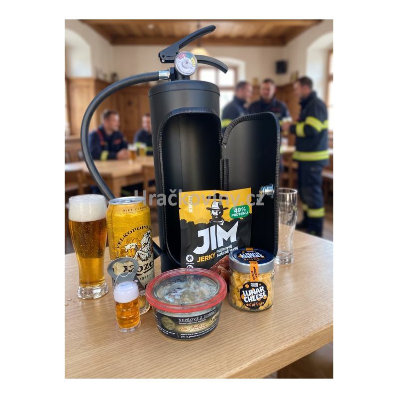 Celý set je zabalený v designovém obalu připomínajícím hasičák, takže na první pohled zaujme a rozesměje. Ideální jako netradiční dárek pro muže, kolegy, kamarády nebo každého milovníka piva a dobrého jídla.