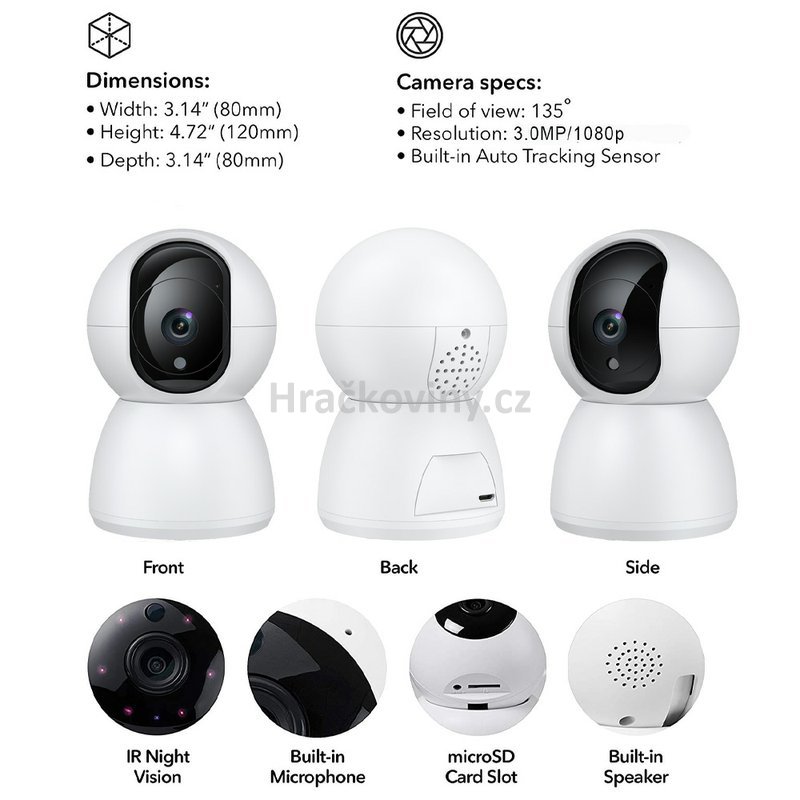 • Funkce: noční vidění, detekce pohybu, obousměrný zvuk, cloudové úložiště